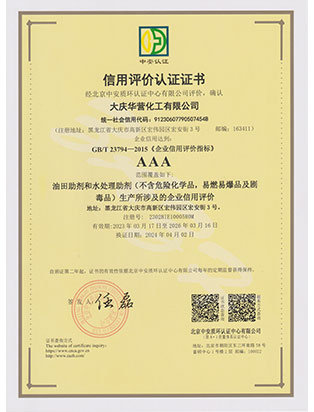 大慶華營化工有限公司成立于2006年7月10日,注冊資金3300萬元,公司類型為有限責任公司。位于大慶高新技術產(chǎn)業(yè)開發(fā)區(qū)宏偉園區(qū),是一家集油田助劑產(chǎn)品的研發(fā)、生產(chǎn)、銷售和技術服務為一體的現(xiàn)代化高新技術企業(yè)。公司注重科技創(chuàng)新,公司擁有18項自主知識產(chǎn)權。企業(yè)承擔過國家火炬計劃重點項目、國家科技型中小企業(yè)創(chuàng)新項目等,2011年被科技部火炬高新技術產(chǎn)業(yè)開發(fā)中心評為國家火炬計劃重點高新技術企業(yè)。公司十余種產(chǎn)品獲得中國石油天然氣集團公司產(chǎn)品質(zhì)量認可證書,其中粘穩(wěn)型驅油劑獲國家火炬計劃重點項目證書。公司憑借多年對大慶油田及周邊油田地質(zhì)情況的研究,可針對各油田地層特點調(diào)整產(chǎn)品的配方,更好地發(fā)揮各類油田助劑的性能。